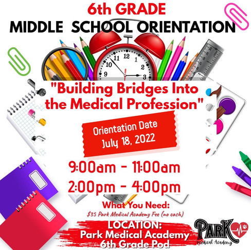 Middle School OrientationJul 11, 20231 min readPlease join us for our 6th and 7th Grade Orientations. There's a lot of information that'll be shared regarding the middle school experience. We can't wait to see you!!!