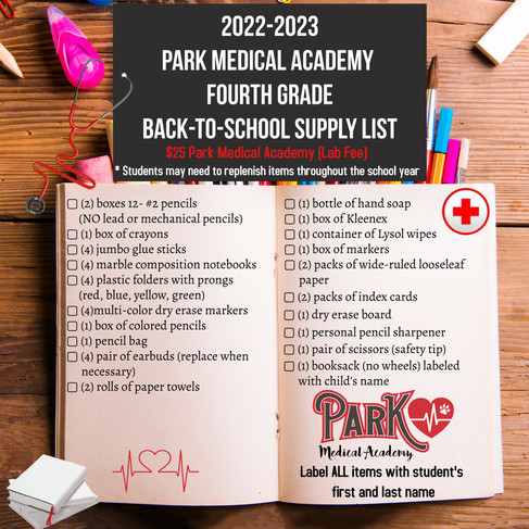 PMA School Supplies ListsJun 29, 20221 min readIt's about that time!! Please see all supply lists for the 2022-2023 school year at Park Medical Academy.PES School Supply List 2022-2023.pdfDownload PDF • 691KB